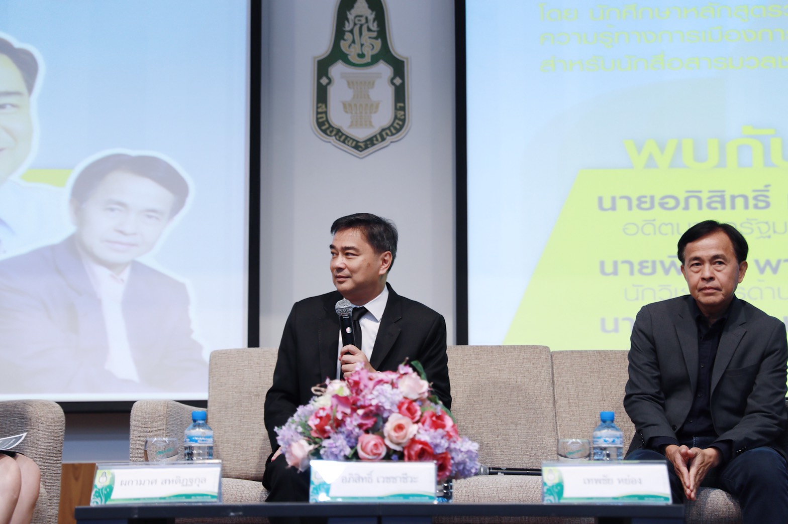 สถาบันพระปกเกล้า 27 ส.ค.- ผู้สื่อข่าวรายงานว่า เวลา 9.00 น. วันนี้ (27 ส.ค.)นายอภิสิทธิ์ เวชชาชีวะ หัวหน้าพรรคประชาธิปัตย์ ได้ไปร่วมเสวนาหัวข้อ บทบาทสื่อมวลชนไทยในยุคเปลี่ยนผ่านประชาธิปไตยภายใต้กติกาใหม่ ที่นักศึกษาหลักสูตรวุฒิบัตรความรู้ทางการเมืองการปกครองในระบอบประชาธิปไตย สถาบันพระปกเกล้า จัดขึ้น