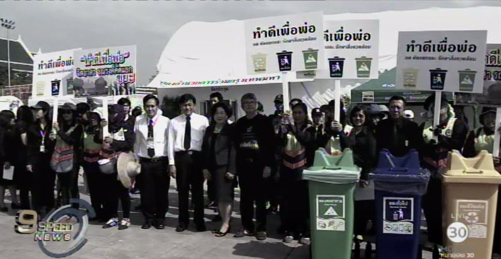นายจักรพันธ์ ผิวงาม รองผู้ว่าฯ กทม. เป็นประธานปล่อยแถวพนักงานทำความสะอาด 20 คน และประชาชนจิตอาสา เดินขบวนรณรงค์แยกขยะก่อนทิ้ง เนื่องจากตลอด 12 วันที่ผ่านมา กทม. เก็บขยะได้ถึง 2,600 ตัน คิดเป็น 40% ของปริมาณขยะทั้งหมดในเขตพระนคร ส่วนใหญ่เป็นเศษอาหารมากที่สุด มีจำนวนถึง 12 ตันต่อวัน ขยะรีไซเคิล 15 ตัน และโฟม 5 ตัน กทม.จึงจัดเจ้าหน้าที่ไปประจำจุดทิ้งขยะจำนวน 10 จุด โดยรอบสนามหลวง เพื่อประชาชนสัมพันธ์ให้ประชาชนช่วยแยกขยะก่อนทิ้ง แบ่งเป็นถังสีเขียวสำหรับเศษอาหาร ถังเหลืองสำหรับขยะรีไซเคิล ถังสีน้ำเงินสำหรับขยะทั่วไป เพื่อให้ง่ายต่อการจัดเก็บและทำลาย