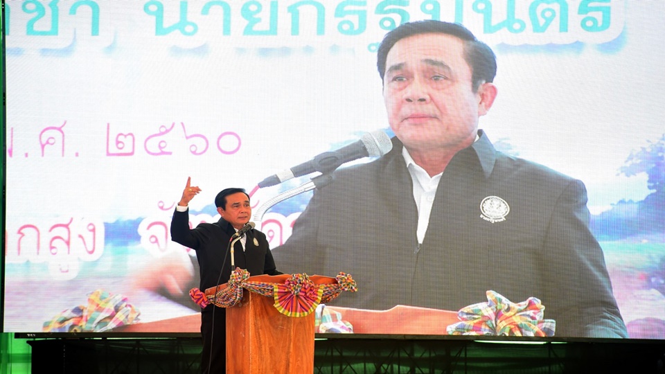 “ขอประชาชนอย่าเฝ้าดูละครเพียงอย่างเดียว แต่ขอให้ติดตามข่าวสารและสาระด้านการเกษตรและด้านอื่น ๆ เพื่อให้เกิดการเรียนรู้และนำมาพัฒนาตนเอง แม้จะบังคับใครไม่ได้ วันนี้จึงต้องจัดระเบียบใหม่เกือนทุกด้าน โดยมีเจ้าหน้าที่ที่ต้องทำเพื่อประชาชน แต่หากเจ้าหน้าที่ทุจริต ขอให้ร้องเรียนมา แต่จะต้องมีหลักฐานเพียงพอ รัฐบาลจะะดูแลประชาชนทุกจังหวัด โดยยึดหลักมั่นคง มั่งคั่ง ยั่งยืน เช่นเดียวกับการจัดสรรที่ดินทำกินให้กับประชาชนที่จะต้องจัดระเบียบใหม่และหาพื้นที่ทำกินให้ประชาชน” นายกรัฐมนตรี กล่าว