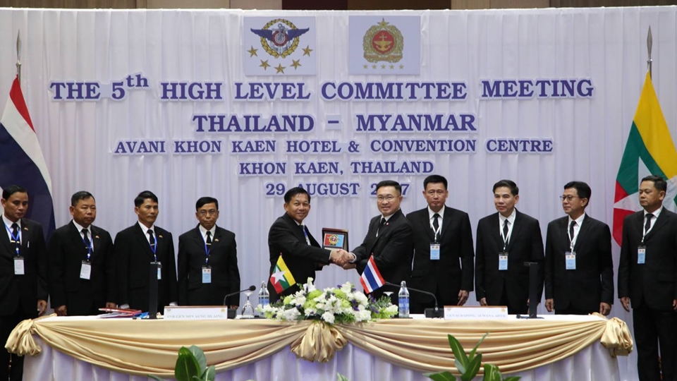 พล.อ.สุรพงษ์ สุวรรณอัตถ์ ผู้บัญชาการทหารสูงสุด และ พล.อ.อาวุโส มิน อ่อง ไหล่ ผู้บัญชาการทหารสูงสุดเมียนมา เป็นประธานร่วมในการประชุมคณะกรรมการระดับสูง ไทย-เมียนมา ครั้งที่ 5 ณ ห้องคอนเวนชั่น 2 โรงแรมอวานี ขอนแก่น โฮเทล แอนด์ คอนเวนชั่น เซ็นเตอร์ อำเภอเมือง จังหวัดขอนแก่น ระหว่างวันที่ 28-30 สิงหาคม 2560
