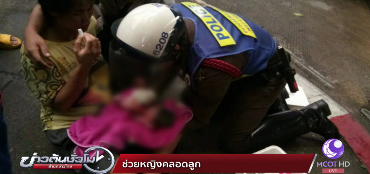 ร.ต.อ.พีรวุฒิ ใหม่อ่อง และ ร.ต.ท.พิเชษฐ์ วิเศษโชค เจ้าหน้าที่ตำรวจจราจรโครงการพระราชดำริ พร้อมกำลังเจ้าหน้าที่และรถกู้ชีพ เร่งให้การช่วยเหลือหญิงท้องใกล้คลอด บริเวณหน้าเจ้าพระยา 3 ถ.อรุณอมรินทร์ ใกล้สะพานพระราม 8 ฝั่งธนบุรี
