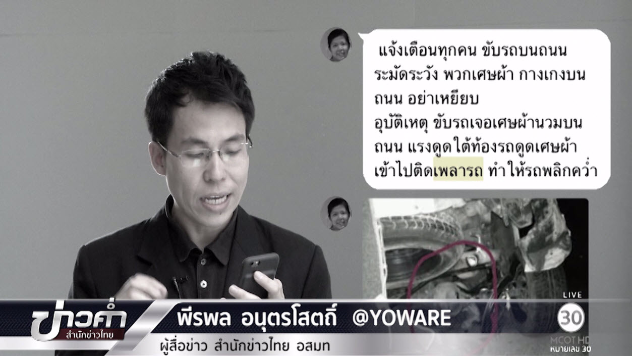 กรุงเทพฯ 24 ต.ค.-บนสังคมออนไลน์แชร์เตือนผู้ขับขี่รถยนต์ ให้ระวังการขับทับผ้าชิ้นใหญ่ เรื่องนี้จริงหรือไม่ ติดตามจากศูนย์ชัวร์ก่อนแชร์ .-สำนักข่าวไทย