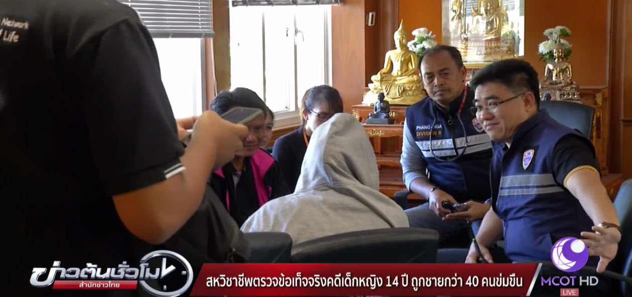 คณะอนุกรรมการสหวิชาชีพ ร่วมสอบถามข้อเท็จจริง คดีแม่เด็กหญิงอายุ 14 ปี เข้าแจ้งความกับพนักงานสอบสวนว่าลูกสาวถูกชายในหมู่บ้านเกาะแรด ตำบลหล่อยูง อำเภอตะกั่วทุ่ง จังหวัดพังงา และพื้นที่ใกล้เคียงกว่า 40 คน ร่วมกันข่มขืนกระทำชำเรา ตั้งแต่เดือนพฤษภาคมถึงปลายเดือนพฤศจิกายนปีที่ผ่านมา โดยบันทึกคำให้การของเด็กหญิงผู้เสียหายไว้เป็นหลักฐานด้วย แต่ยังไม่สามารถเปิดเผยรายละเอียดได้ .-สำนักข่าวไทย