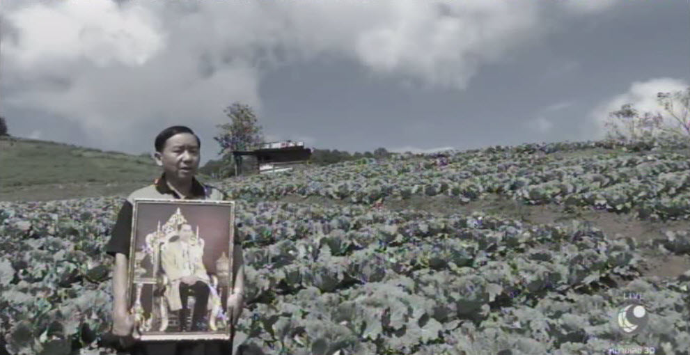 ภูมิภาค 24 ต.ค. – นายสุทิน เตชะเลิศพนา อายุ 52 ปี ชาวไทยภูเขาเผ่าม้ง บนดอยม่อนแจ่ม อ.แม่ริม จ.เชียงใหม่ ถือพระบรมฉายาลักษณ์พระบาทสมเด็จพระปรมินทรมหาภูมิพลอดุลยเดช ไว้ในมืออย่างเทิดทูน ระหว่างพาชมโรงเรียนเจ้าแม่หลวงอุปถัมภ์ 2 ในหมู่บ้าน ซึ่งในอดีตเคยเป็นป่าทึบ กระทั่งพระบาทสมเด็จพระปรมินทรมหาภูมิพลอดุลยเดช เสด็จพระราชดำเนินเยี่ยมพสกนิกร และได้รับพระราชทานเมล็ดพันธุ์ผลไม้เมืองหนาวปลูกแทนฝิ่น ทำให้ชาวบ้านมีอาชีพทำกิน สร้างรายได้ให้แก่ครอบครัว โดยหลังทราบข่าวการสวรรคต ตนเองเสียใจเป็นอย่างมาก และเชื่อว่าคนไทยทุกคนก็เสียใจเช่นกัน