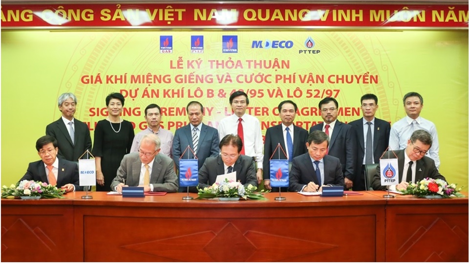 นายสมพร ว่องวุฒิพรชัย ประธานเจ้าหน้าที่บริหารและกรรมการผู้จัดการใหญ่ บริษัท ปตท.สำรวจและผลิตปิโตรเลียม จำกัด (มหาชน) หรือ ปตท.สผ. พร้อมผู้ถือหุ้นในโครงการเวียดนามบี และ 48/95 และ 52/97 ได้แก่ บริษัท ปิโตรเวียดนาม (PVN) บริษัท ปิโตรเวียดนาม เอ็กซ์พลอเรชั่น โปรดัคชั่น คอร์ปอเรชั่น (PVEP) และบริษัท มิตซุย ออยล์ เอ็กซ์พลอเรชั่น จำกัด (MOECO) ร่วมลงนามข้อตกลงเบื้องต้นเกี่ยวกับราคาก๊าซธรรมชาติและราคาค่าผ่านท่อก๊าซฯ (Letter of Agreement) ก่อนการตัดสินใจลงทุนขั้นสุดท้าย (Final Investment Decision) ในโครงการเวียดนาม บี และ 48/95 และ 52/97 ประเทศเวียดนาม.-สำนักข่าวไทย