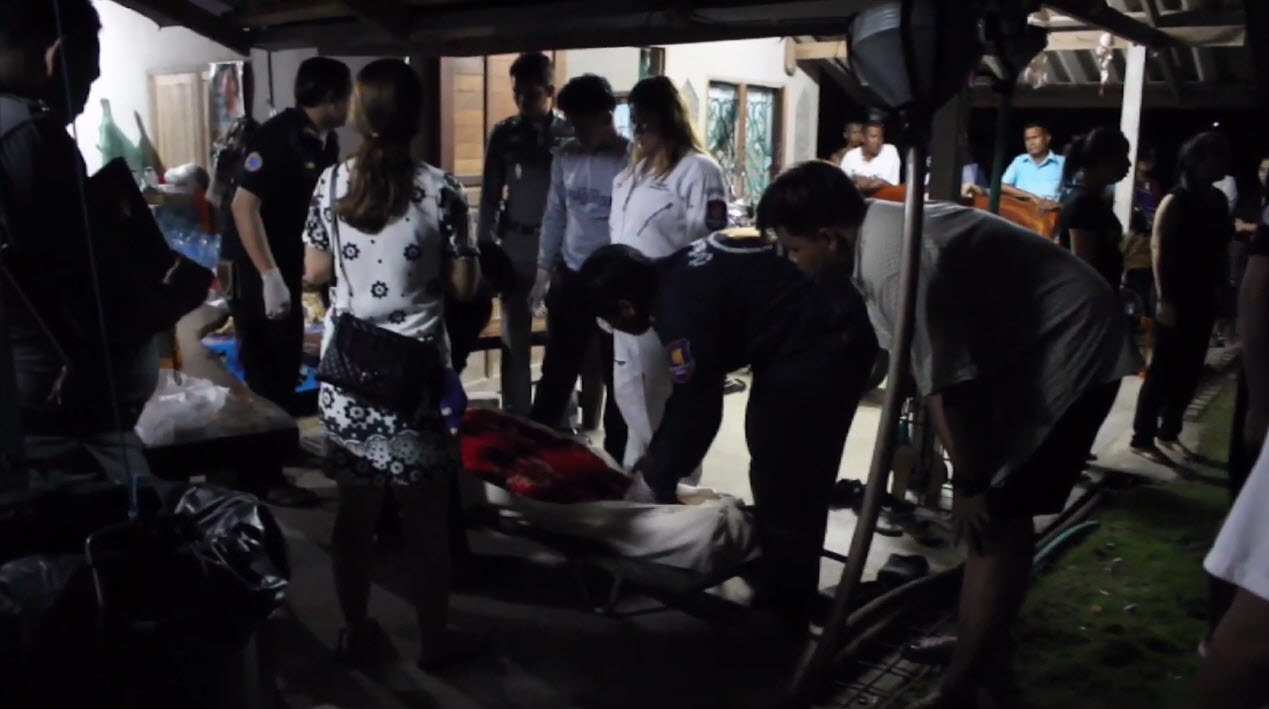 พบบริเวณหน้าบ้านที่เกิดเหตุโต๊ะกินข้าวข้างบ้าน พบศพชายนอนเสียชีวิตอยู่ที่พื้นบ้าน สวมกางเกงขาก๊วยชาวเล สวมเสื้อสีฟ้า นอนเสียชีวิตอยู่กับพื้นบ้าน ทราบชื่อคือ นายสนอง มีหวัง อายุ 58 ปี เป็นชาว จ.เพชรบุรี ถูกยิงเข้าที่บริเวณขมับขวา 1 นัด สอบสวนทราบว่า คนที่ยิงนายสนองคือภรรยาของผู้ตาย อายุ 54 ปี มีอาชีพขายข้าวหลามหน้าบ้าน และรอยืนรอมอบตัวกับตำรวจอยู่ที่บ้าน