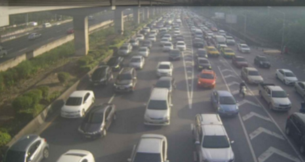 การจราจรบนทางด่วนขั้น 2 แจ้งวัฒนะ มุ่งหน้างามวงศ์วาน ประชาชื่น ยังแน่น ! ท้ายเลยโค้งวัดบัวขวัญ