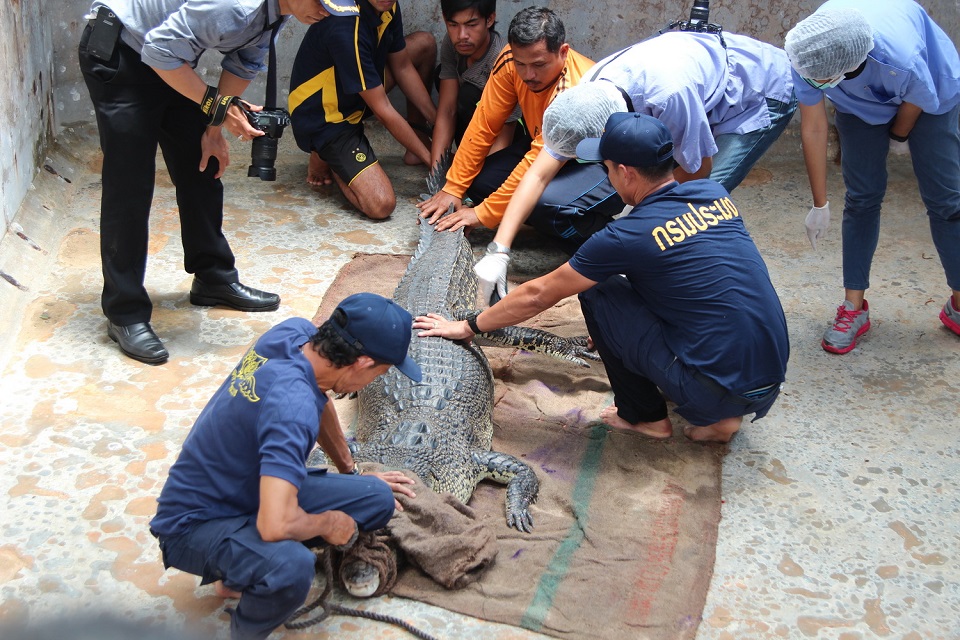 ภูเก็ต 8 ก.ย.- รองอธิบดีกรมอุทยานฯ-ดร.ธรณ์ นำทีมสัตวแพทย์มหิดลร่วมพิสูจน์สายพันธุ์จระเข้โผล่หาดเลพัง-ภูเก็ต หลังต้อนจับได้เมื่อ 1 ก.ย. คาด 2 สัปดาห์รู้ผล ก่อนหาที่อยู่ใหม่ให้เหมาะสม เบื้องต้นไม่พบไมโครชิพ พร้อมเปลี่ยนมาให้อาหารตามวิสัยจระเข้ หลังไม่ยอมกินซี่โครงไก่และปลาตาย