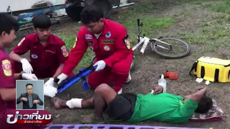 ลพบุรี 12 ก.ย. – อุทาหรณ์สำหรับผู้ใช้จักรยานที่บันไดปั่นชำรุดเหลือแต่เดือยเหล็ก หลังหนุ่มใหญ่วัย 55 ปี ชาวลพบุรี ปั่นจักรยานล้มและถูกเดือยเหล็กแทงขาบาดเจ็บสาหัส