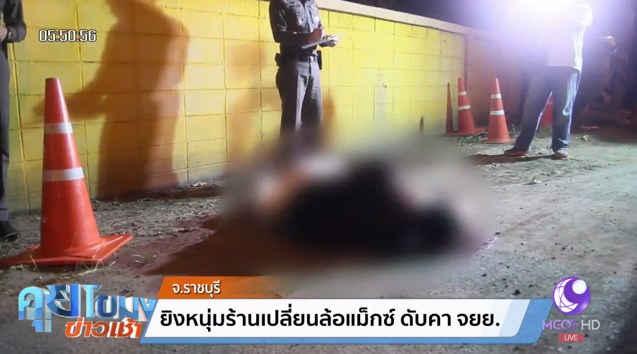 ราชบุรี 13 ก.ย. – คนร้ายใช้รถกระบะดักยิงหนุ่มวัย 27 ปี คนงานร้านเปลี่ยนล้อแม็กซ์รถยนต์ เสียชีวิตคาถนนทรงพล อ.ปากโป่ง จ.ราชบุรี คาดขัดแย้งธุรกิจมืดหรือเรื่องส่วนตัว