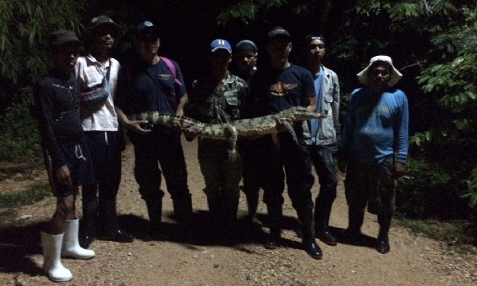 กรณีจระเข้น้ำจืดหลุดออกจากฟาร์มเลี้ยงในพื้นที่หมู่ 9 ต.ม่วงงาม อ.สิงหนคร จ.สงขลา ตั้งแต่ 27 สิงหาคมที่ผ่านมา ตามจับได้แล้ว 26 ตัว ส่วนที่เหลือเจ้าหน้าที่ชุดไกรทองจากศูนย์ป้องกันและปราบปรามประมงน้ำจืดภาคใต้ (สุราษฎร์ธานี) ร่วมกับศูนย์ป้องกันและปราบปรามประมงทะเลเขต 2 สงขลา และชาวบ้านพยายามตามหาอย่างต่อเนื่อง ล่าสุดจับจระเข้น้ำจืดอีก 1 ตัว เมื่อคืนที่ผ่านมา (12 ก.ย.) อยู่ในแหล่งน้ำของชาวบ้าน ห่างจากฟาร์มประมาณ 700 เมตร ขนาดลำตัวยาวกว่า 1 เมตร น้ำหนักประมาณ 20 กิโลกรัม คาดว่ายังมีจระเข้ที่ยังไม่สามารถจับได้อีกประมาณ 4 ตัว