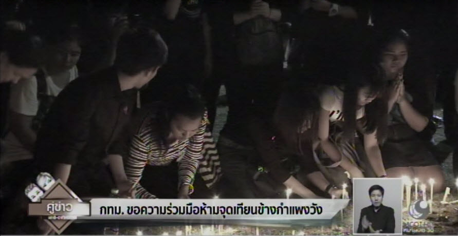 จากการที่มีประชาชนชาวไทยจำนวนมาก เดินทางไปร่วมแสดงความอาลัย พระบาทสมเด็จพระปรมินทรมหาภูมิพลอดุลยเดช ด้วยการชักชวนกันผ่านสังคมออนไลน์ให้เตรียมเทียนสีขาว ดอกไม้สีเหลือง ไปร่วมจุดเทียนแสดงความอาลัยที่บริเวณกำแพงพระบรมมหาราชวัง ตั้งแต่วันที่ 15 ตุลาคมที่ผ่านมา ทำให้เกิดเขม่าควันบริเวณกำแพงพระบรมมหาราชวัง และอาจทำให้เกิดความเสียหายกับสนามหญ้าได้ กทม.จึงขอความร่วมมือประชาชนที่มาถวายสักการะพระบรมศพ ให้มาด้วยใจ งดจุดเทียนบริเวณริมกำแพงวังและสนามหญ้า เนื่องจากการจุดเทียนไม่ใช่ธรรมเนียมการแสดงความอาลัยตามประเพณีไทย หรือการถวายสักการะพระบรมศพที่ถูกต้อง
