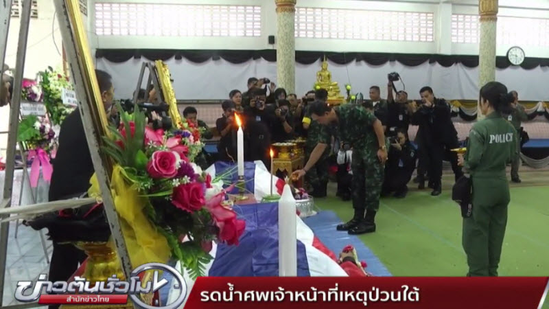 ยะลา 15 ก.ย. – พล.ท.คุณวุฒิ หน่อแก้ว แม่ทัพน้อยที่ 4 รอง ผอ.รมน.ภาค 4 ส่วนหน้า เป็นประธานในพิธีวางพวงหรีดและรดน้ำศพ ส.ต.ธเนตร พุทโท สังกัดหน่วยเฉพาะกิจกรมทหารพรานที่ 47 ที่เสียชีวิตจากเหตุคนร้ายลอบวางระเบิดที่ จ.ยะลา และ ด.ต.อนิรุทธ จันทะวงษ์ เจ้าหน้าที่ตำรวจชุดเก็บกู้วัตถุระเบิดที่เสียชีวิตจากการสนธิกำลังเข้าพื้นที่ตรวจสอบเหตุระเบิด ซึ่งคนร้ายจุดชนวนซ้ำ บรรยากาศเป็นไปอย่างโศกเศร้า มีการมอบเหรียญบางระจัน พร้อมประกาศนียบัตรเชิดชูเกียรติ และเงินเยียวยาให้กับครอบครัวผู้สูญเสีย หลังเสร็จพิธีจะเคลื่อนย้ายศพ ส.ต.ธเนตร กลับไปบำเพ็ญกุศลที่บ้านเกิด จ.นครสวรรค์ ส่วน ด.ต.อนิรุทธ จะเคลื่อนย้ายศพไปบำเพ็ญกุศลที่ จ.เลย. – สำนักข่าวไทย