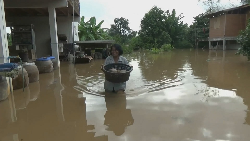 ส่วนบ้านเรือนริมฝั่งแม่น้ำยมในพื้นที่หมู่ 2 หมู่ 3 ต.ป่ากุมเกาะ อ.สวรรคโลก มีน้ำเอ่อท่วมแล้วประมาณ 30-80 เซนติเมตร เนื่องจากเป็นที่ลุ่มต่ำ เจ้าหน้าที่เทศบาลฯ ป่ากุมเกาะและทหารช่วยชาวบ้านขนย้ายสิ่งของ รวมทั้งวางแนวกระสอบทรายเป็นแนวกั้นป้องกันน้ำท่วมถนนของหมู่บ้าน.-สำนักข่าวไทย