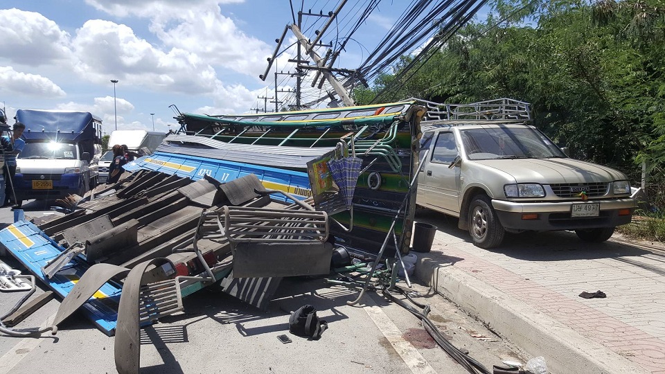 เบื้องต้นทราบว่า ขณะที่รถสองแถวรับผู้โดยสารมุ่งหน้าตัวเมืองมหาชัย ถูกรถสิบล้อเข้าชนท้ายอย่างแรงโดยไม่คาดคิด จนรถสองแถวพุ่งเกยขึ้นไปบนทางเท้าชนกับเสาไฟฟ้าหักโค่น หลังเกิดเหตุเจ้าหน้าที่ไม่พบตัวคนขับรถสิบล้อ คาดว่าหลบหนีไปแล้ว และจะออกหมายเรียกเจ้าของรถบรรทุก เพื่อตามหาตัวคนขับมาสอบปากคำก่อนดำเนินคดี.-สำนักข่าวไทย
