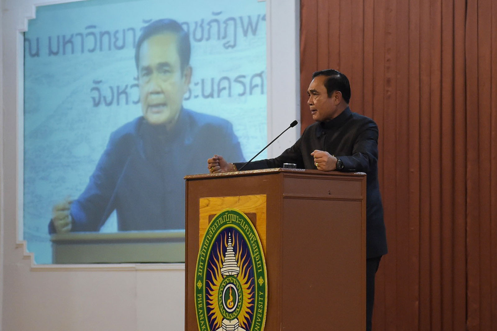 มหาวิทยาลัยราชภัฎพระนครศรีอยุธยา 19 ก.ย.-ผู้สื่อข่าวรายงานว่า หลังเสร็จสิ้นการประชุมคณะรัฐมนตรีนอกสถานที่อย่างเป็นทางการที่อาคาร 100 ปี มหาวิทยาลัยราชภัฎพระนครศรีอยุธยา พลเอก ประยุทธ์ จันทร์โอชา นายกรัฐมนตรี ได้พบกับประชาชน ประมาณ 1,000 คน ณ หอประชุมมหาวิทยาลัยราชภัฎพระนครศรีอยุธยา พร้อมรับชมวีดีทัศน์ “ทิศทางการพัฒนาภาคกลาง”จากนั้น นายกรัฐมนตรี กล่าวกับประชาชน ย้ำให้ทุกคนร่วมกันคิดแก้ปัญหาของประเทศ และมองอนาคตร่วมกัน โดยเฉพาะปัญหาพืชผลการเกษตร ที่ไม่สามารถแก้ได้ในระยะเวลาอันสั้น และต้องทำการเกษตรแบบผสมผสาน เพื่อสร้างความเข้มแข็ง และรัฐบาลจะช่วยอย่างเต็มที่ แต่ทั้งนี้ต้องใช้งบประมาณของประเทศอย่างเหมาะสมในทุกด้าน และย้ำรัฐบาลกำลังเดินหน้าแก้ทุกปัญหาของประเทศ และวางยุทธศาสตร์ชาติ ซึ่งต้องอาศัยความร่วมมือทุกฝ่าย เพื่อเดินไปข้างหน้าซึ่งประชาชนรอให้รัฐบาลแก้ไขปัญหาเพียงฝ่ายเดียวไม่ได้
