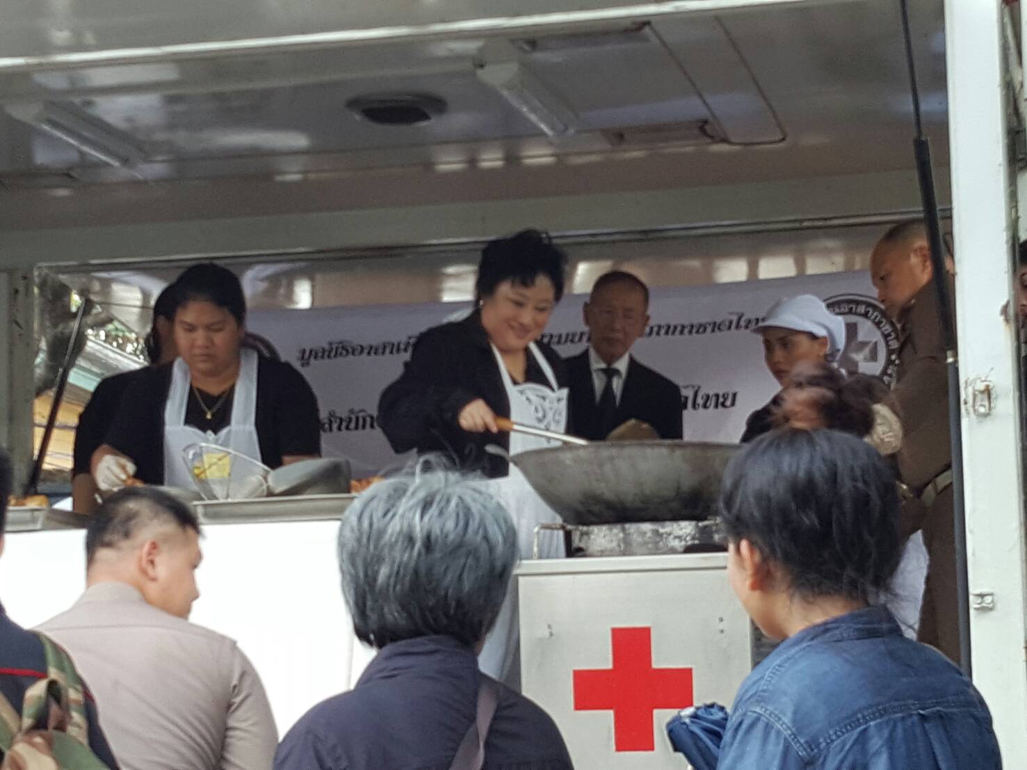 พระเจ้าวรวงศ์เธอ พระองค์เจ้าโสมสวลี พระวรราชาทินัดดามาตุ เสด็จไปประกอบอาหารที่เต็นท์มูลนิธิเพื่อนพึ่ง(ภาฯ)ยามยาก สภากาชาดไทย ให้กับประชาชนที่มาถวายสักการะพระบรมศพ และแสดงความอาลัย ต่อพระบาทสมเด็จพระปรมินทรมหาภูมิพลอดุลยเดช ที่เดินทางมายังศาลาสหทัยสมาคมสร้างความปลื้มปิติ และซาบซึ้งในพระกรุณาธิคุณ
