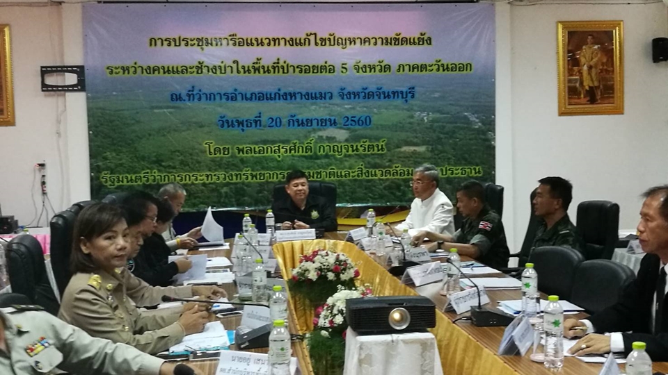 จันทบุรี 20 ก.ย.-รัฐมนตรีกระทรวงทรัพยากรธรรมชาติฯ ลงพื้นที่ติดตามการแก้ปัญหาช้างป่าเขตรอยต่อ 5 จังหวัดภาคตะวันออก ที่อำเภอแก่งหางแมว จังหวัดจันทบุรี