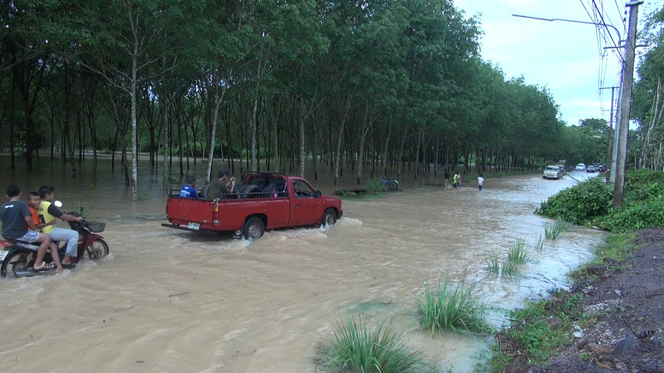 ส่วน จ.สงขลา ฝนทิ้งช่วงมาตั้งแต่เช้า ส่งผลให้น้ำท่วมขังในพื้นที่ลุ่มของ อ.สะเดา มีแนวโน้มดีขึ้น 3 ตำบล คือ ต.ทุ่งหมอ ต.ท่าโพธิ์ และ ต.ปริก ซึ่งนายบุญพาศ รักนุ้ย นายอำเภอสะเดา กล่าวว่า ฝนตกตลอด 2 วัน ทำให้น้ำจาก ต.สำนักแต้ว และ ต.ปาดังเบซาร์ ไหลเข้าท่วมในพื้นที่ลุ่มต่ำทั้ง 3 ตำบล เพราะเป็นที่ลุ่มริมคลองอู่ตะเภาและคลองสาขา โดยน้ำท่วมในลักษณะน้ำไหลผ่าน ท่วมสวนยางพารา สวนผลไม้ เส้นทาง และบ้านเรือนประชาชน ยังไม่สร้างความเสียหาย เนื่องจากประชาชนเตรียมรับสถานการณ์ไว้ก่อน และวันนี้มีโรงเรียนปิด 1 แห่ง คือ โรงเรียนวัดยางทอง หากไม่มีฝนตกอีกก็จะกลับสู่ภาวะปกติ.-สำนักข่าวไทย