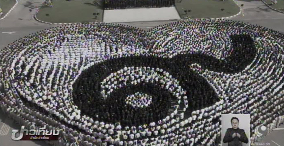 ภูมิภาค 21 ต.ค. – พสกนิกรหลายจังหวัดร่วมแสดงความอาลัยแด่พระบาทสมเด็จพระปรมินทรมหาภูมิพลอดุลยเดช โดยชาวชัยภูมินับหมื่นคนเข้าร่วมพิธีที่ลานหน้าศาลากลางฯ พร้อมร่วมกันแปรอักษรเป็นเลข ๙ และรูปหัวใจสีขาว-ดำ