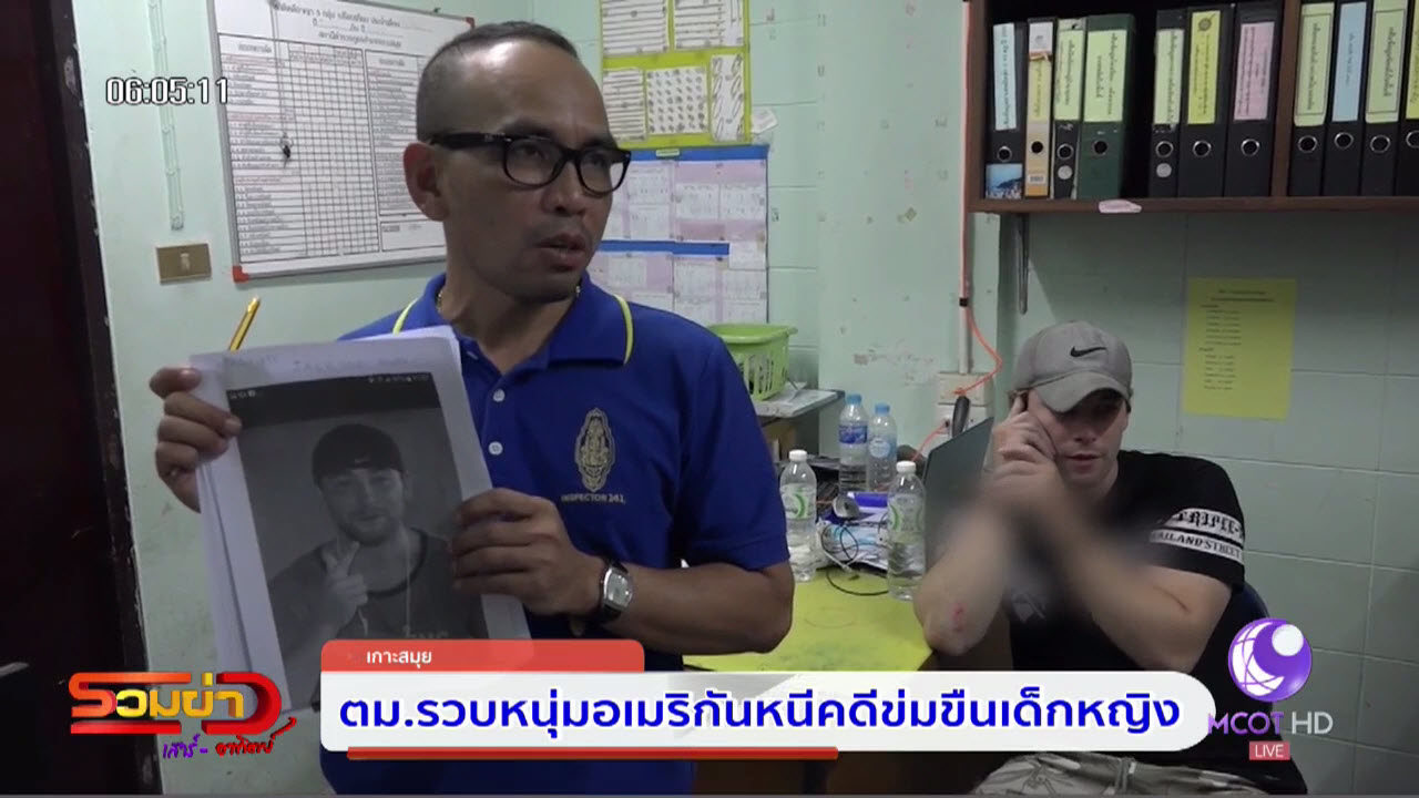 สุราษฎร์ธานี 23 ก.ย.-ตม.สุราษฎร์ธานี ร่วมกับตำรวจ สภ.เกาะสมุย ร่วมกันจับกุมตัวหนุ่มอเมริกัน วัย 26 ปี ผู้ต้องหาหลบหนีคดีข่มขืนเด็กหญิงอายุ 5 ขวบ จากสหรัฐ โดยพบตัวที่ท่าเรือเกาะสมุย เตรียมส่งกลับสหรัฐดำเนินคดีต่อไป