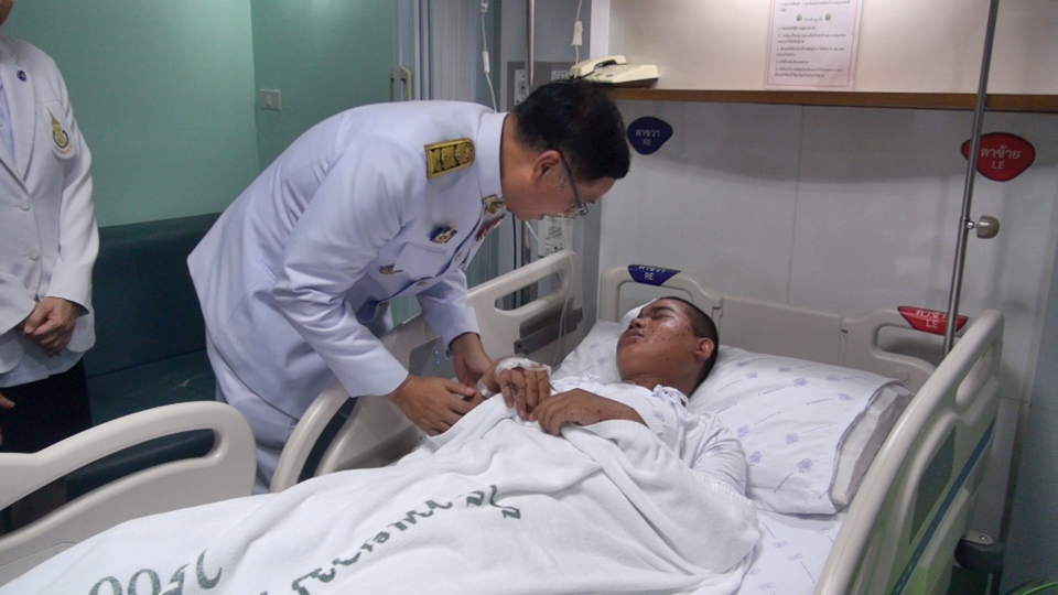 ที่โรงพยาบาลสงขลานครินทร์ อ.หาดใหญ่ จ.สงขลา วันนี้(23 ก.ย.) สมเด็จพระเจ้าอยู่หัวมหาวชิราลงกรณ บดินทรเทพยวรางกูร ทรงพระกรุณาโปรดเกล้าโปรดกระหม่อมให้นายทรงพล สวาสดิ์ธรรม ผู้ว่าราชการจังหวัดสงขลา เป็นผู้แทนพระองค์อัญเชิญแจกันดอกไม้พระราชทานและตะกร้าสิ่งของพระราชทาน เยี่ยมอาการบาดเจ็บของอาสาสมัครทหารพราน ธันยา เอื้องฟ้าไพรวัลย์ ที่ได้รับบาดเจ็บจากเหตุการณ์คนร้ายลอบวางระเบิดใน ต.ตะบิ้ง อ.สายบุรี จ.ปัตตานี เมื่อวานนี้(22 ก.ย.) ยังความซาบซึ้งในพระมหากรุณาธิคุณที่ทรงมีต่ออาสาสมัครทหารพรานธันยาและครอบครัว อย่างหาที่สุดมิได้