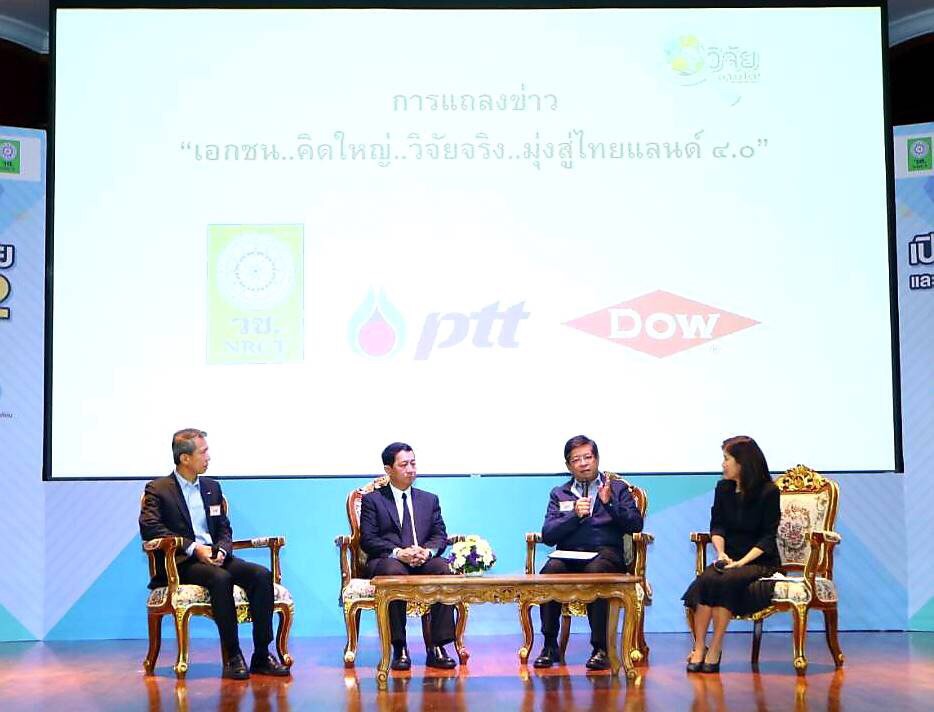 กรุงเทพฯ 23 ก.ย. – วช.จับมือดาวและ ปตท.ขับเคลื่อนไทยแลนด์ 4.0 ผ่านการวิจัยและนวัตกรรม ให้มีสัดส่วนงานวิจัยภาครัฐต่อเอกชน 80 : 20 ใน 20 ปีข้างหน้า