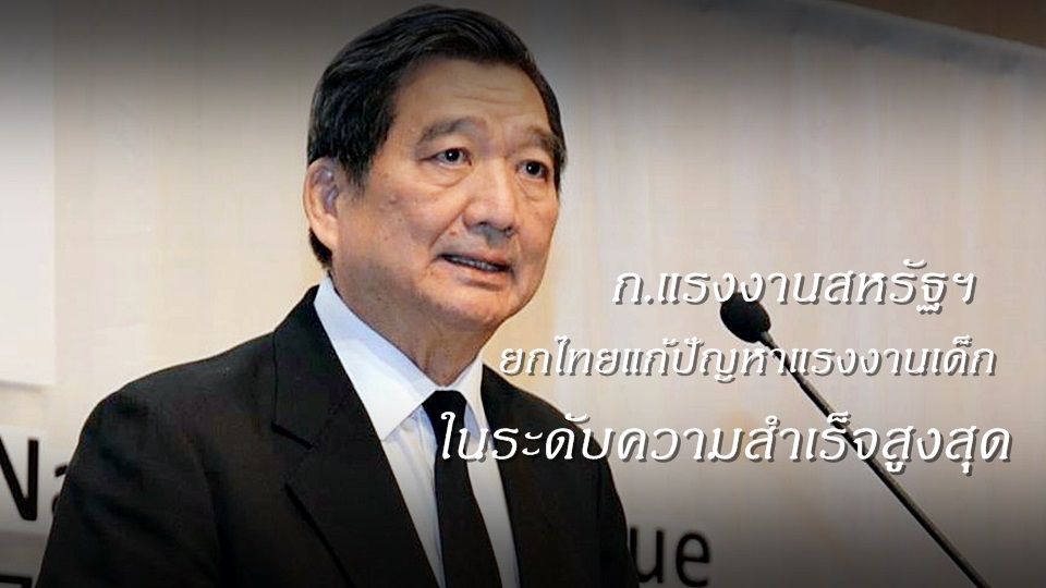 ก.แรงงาน 24 ก.ย.-รมว.แรงงาน ปลื้มผลงานป้องกันและแก้ไขปัญหาการใช้แรงงานเด็กในรูปแบบที่เลวร้าย ได้รับการยอมรับในระดับสากล โดยกระทรวงแรงงานสหรัฐ ประกาศผลการจัดอันดับ ประจำปี 2016 ยกไทยจากระดับที่มีความสำเร็จปานกลาง เป็นระดับที่มีความสำเร็จมากซึ่งเป็นระดับสูงสุด