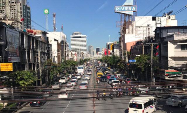 การจราจรปากซอยศูนย์วิจัย ถนนเพชรบุรี ขาเข้า รถหนาแน่นเคลื่อนตัวได้