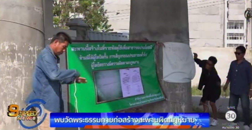 ปทุมธานี 11 ธ.ค.- หลังจากมีการแจ้งความดำเนินคดีกับวัดพระธรรมกาย ฐานก่อสร้างสะพานข้ามคลองโดยไม่ขออนุญาต และไม่ยกสะพานให้เป็นสาธารณประโยชน์ ล่าสุดนายชูชาติ ศุภวรรธนางกูร อดีตผู้อำนวยการโครงการชลประทานปทุมธานี สำนักงานชลประทานที่ 11 นำแผ่นป้ายไวนิล ติดไว้ใต้สะพานข้ามคลอง 3 อำเภอคลองหลวง จังหวัดปทุมธานี ซึ่งเป็น 1 ใน 3 สะพานข้ามคลอง ที่วัดพระธรรมกายก่อสร้างเพื่อใช้สัญจร โดยไม่ขออนุญาตจากกรมชลประทาน นอกจากนี้ยังมีอีก 3 สะพานที่ทางวัดพระธรรมกายขออนุญาตก่อสร้างถูกต้อง แต่ไม่ยกสะพานให้เป็นสาธารณประโยชน์