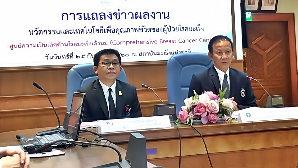นพ.ธีรพล โตพันธานนท์ อธิบดีกรมการแพทย์ พร้อมด้วย นพ. วีรวุฒิ อิ่มสำราญ ผอ.สถาบันมะเร็งแห่งชาติ แถลงข่าวผลงานนวัตกรรมและเทคโนโลยีเพื่อคุณภาพชีวิตของผู้ป่วยโรคมะเร็ง ศูนย์ความเป็นเลิศด้านโรคมะเร็งเต้านม(Comprehensive Breast Cancer center) ว่า เนื่องจากปัจจุบันเทคโนโลยีก้าวหน้า ทำให้ประชากรส่วนใหญ่อายุยืน ประกอบกับวิถีการดำเนินชีวิตที่เปลี่ยนไป ทำให้พบอัตราการป่วยและตายจากโรคมะเร็งเพิ่มมากขึ้น ในผู้หญิงพบการป่วยด้วยโรคมะเร็งเต้านมมากที่สุด โดยข้อมูลจากองค์กรวิจัยมะเร็ง นานาชาติ ปี 2555พบว่าอุบัติการณ์ การเกิดโรคมะเร็งเต้านมในผู้หญิงทั่วโลก พบราว 43.1 ต่อแสนประชากร และมีอัตราการเสียชีวิต 521,907 คน ในประเทศไทยพบผู้ป่วย 28.5 ต่อแสนประชากร หรือคิดเป็นผู้ป่วยรายใหม่ 12,613 ราย เสียชีวิต 2,896 ราย ส่วนใหญ่มีอายุเฉลี่ย 40-70 ปี