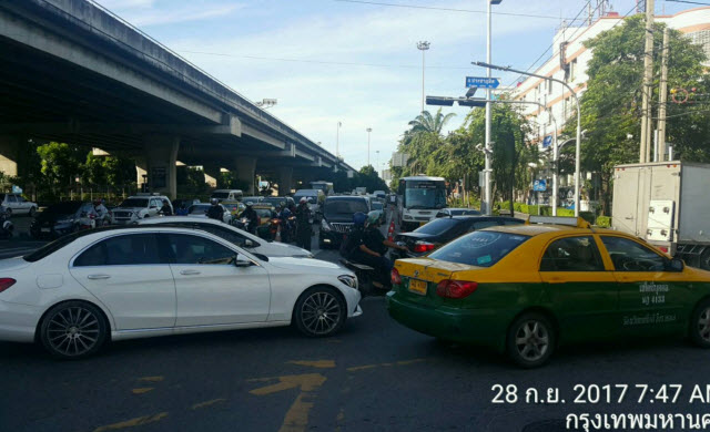 การจราจรถนนประดิษฐ์มนูธรรม ขาเข้า เลี้ยวขวาแยกประชาธรรม ไปประชาอุทิศ เหม่งจ๋าย รถหนาแน่น