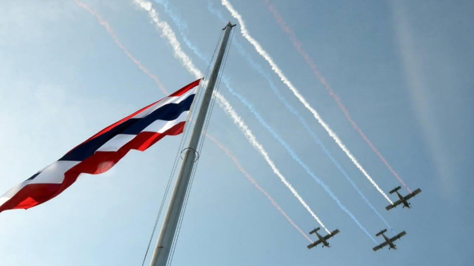 กรุงเทพฯ 20 ก.ย.- ทุกส่วนราชการพร้อมใจจัดกิจกรรม 100 ปี ธงชาติไทย ทอ.จัดเครื่องบิน Peacemaker ปล่อยควันสีธงชาติ ขณะที่ ทร.จัดกิจกรรมณ ป้อมวิไชยประสิทธิ์ สถานที่ที่ธงชาติถูกชักขึ้นเป็นแห่งแรกในสยามประเทศ