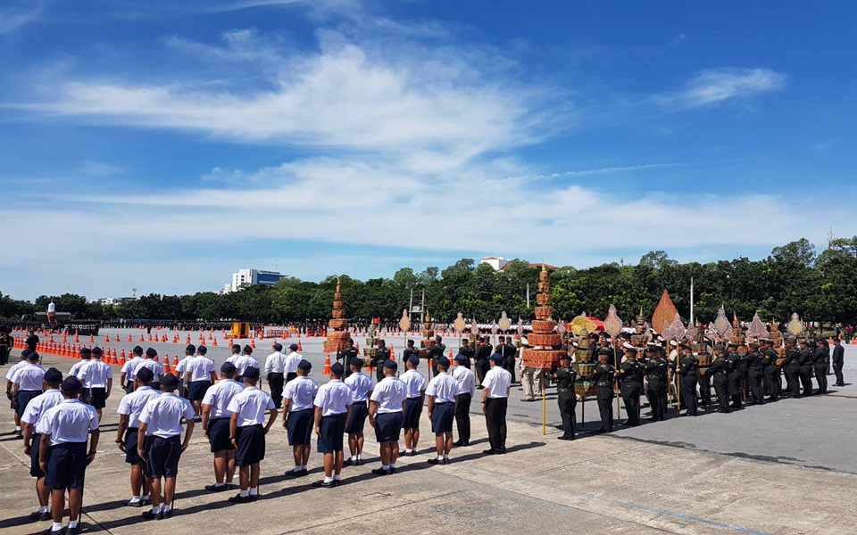 ภายในกรมทหารราบที่ 11 รักษาพระองค์ วันนี้ (28 ก.ย.) กำลังพลกว่า 2,000 นาย จากหน่วยต่างๆ ทั้งกองบังคับการกองผสม อาทิ โรงเรียนนายร้อย จปร. โรงเรียนนายเรือ และโรงเรียนนายเรืออากาศ ขบวนทหารนำและตาม จาก ร.1 พัน 1 รอ. และ ร.11 พัน 1 รอ. ชุดชักลากของกรมสรรพาวุธทหารบก และชุดแบกหามของกรมขนส่งทหารบก ร่วมกันซักซ้อมขบวนพระบรมราชอิสริยยศ งานพระราชพิธีถวายพระเพลิงพระบรมศพพระบาทสมเด็จพระปรมินทรมหาภูมิพลอดุลยเดช การซ้อมครั้งนี้เป็นการนำข้อบกพร่องจากครั้งก่อนมาปรับแก้ แม้สภาพอากาศร้อนจัด แต่สีหน้าของกำลังพลทุกนายไร้ซึ่งความเหน็ดเหนื่อย แววตาเต็มไปด้วยความมุ่งมั่น เพื่อให้ทุกริ้วขบวนงดงามสมพระเกียรติ โดยเป็นการซ้อมเสมือนจริงบนพื้นที่จำลองครั้งสุดท้าย ก่อนย้ายไปซ้อมที่มณฑลพิธีท้องสนามหลวง วันที่ 7 ตุลาคมนี้