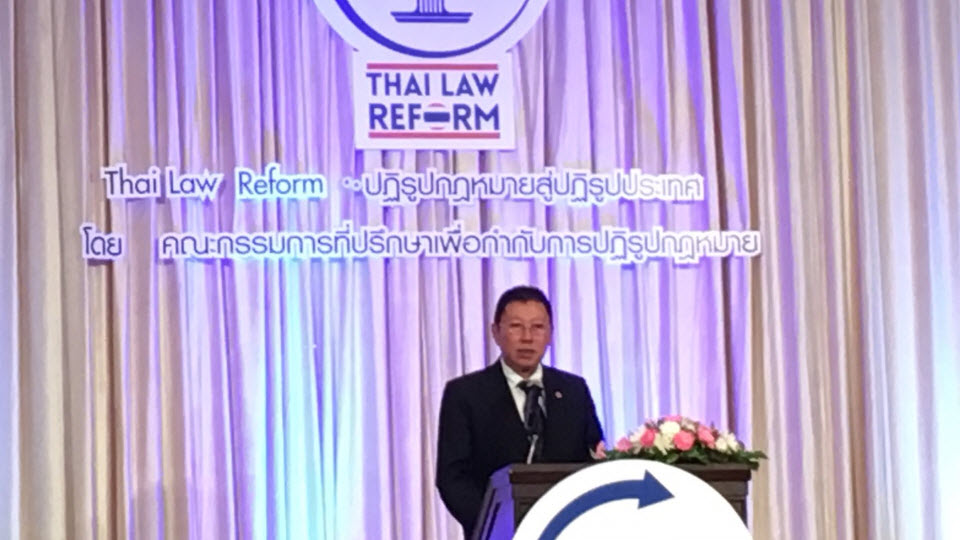 กรุงเทพฯ 28 ก.ย.- นายบวรศักดิ์ อุวรรณโณ ประธานกรรมการที่ปรึกษาเพื่อกำกับการปฏิรูปกฎหมาย เป็นประธาน เปิดโครงการสัมมนา “Thai Law Reform ปฏิรูปกฎหมายสู่ปฏิรูปประเทศ” พร้อมปาฐกถาเรื่อง “ปฏิรูปกฎหมายสู่ปฏิรูปประเทศ” ตอนหนึ่งว่า การปฏิรูปกฏหมายคือการปฏิรูปประเทศ กฎหมายมีส่วนสำคัญในการกำหนดทรัพยากร กำหนดสิทธิ ผลประโยชน์ เป็นโครงสร้างการจัดทำผลประโยชน์ที่สำคัญ จึงต้องปฏิรูป แก้กฎหมายจำเป็น ให้เกิดความเชื่อมั่นและแน่นอน