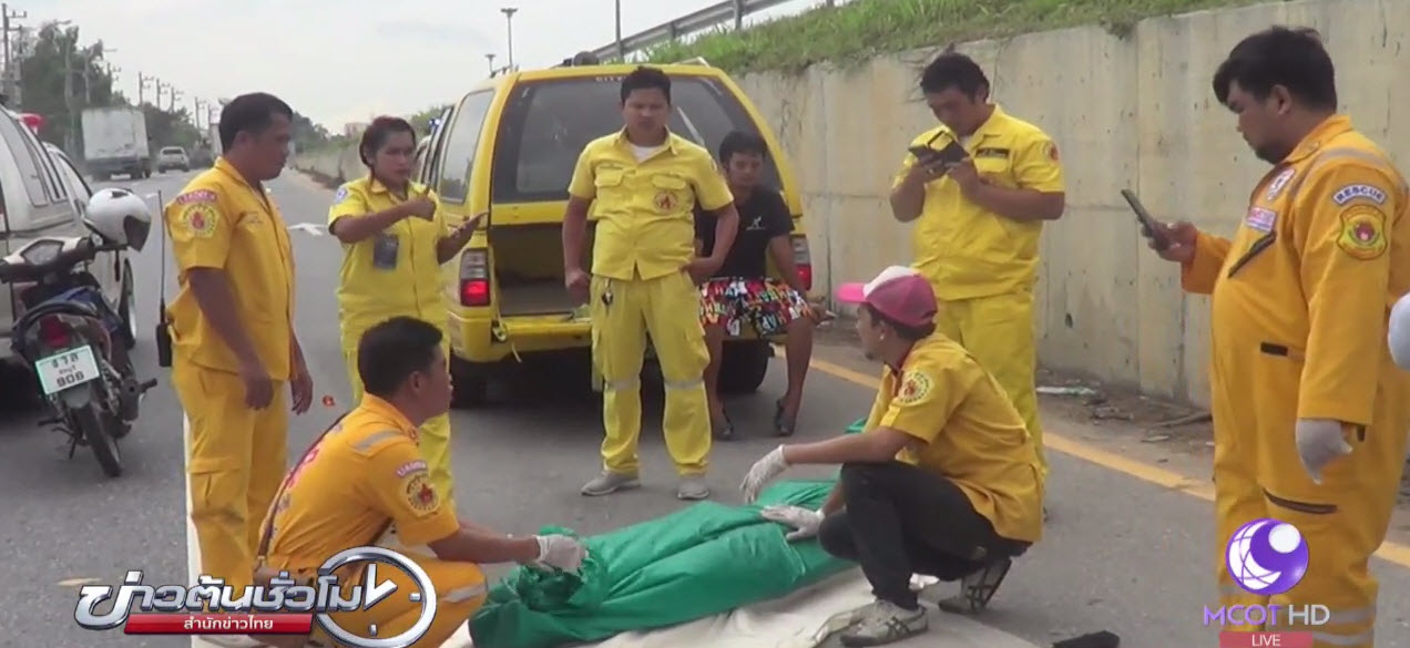 ชลบุรี 29 ก.ย.-เกิดเหตุรถกระบะชนกับรถจักรยานยนต์ ช่วงใต้สะพานกลับรถห้วยน้ำแดง เส้นทางคู่ขนานมอเตอร์เวย์ จ.ชลบุรี โดยรถกระบะด้านหน้าพังเสียหาย และมีรถจักรยานยนต์พลิกคว่ำติดคาหน้ารถ พบร่างคนขี่รถจักรยานยนต์นอนเสียชีวิตอยู่กลางถนน ตรวจสอบในตัวพบบัตรประชาชน เป็นชายอายุ 52 ปี ขณะที่คนขับรถกระบะให้การว่ารถจักรยานยนต์ของผู้ตายได้ขี่เพื่อลอดใต้สะพานกลับรถอย่างกะทันหัน ทำให้ตนเองเบรกไม่รถไม่อยู่พุ่งชนอย่างแรง.-สำนักข่าวไทย