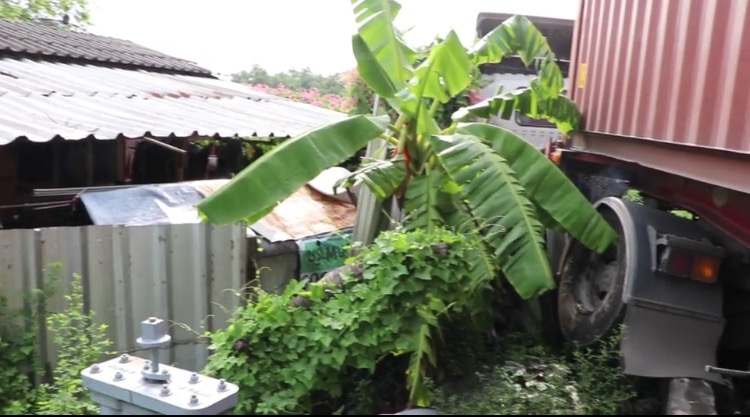 เมื่อเวลา 09.30 น. วันนี้ (30 ก.ย.) ร.ต.อ.ศราวุธ ปัญจะวัตร รองสารวัตร (สอบสวน) สภ.บางปะกง จ.ฉะเชิงเทรา พร้อมหน่วยกู้ภัยฉะเชิงเทรา เข้าช่วยเหลืออุบัติเหตุรถพ่วง 18 ล้อ พุ่งชนบ้านเรือน ริมถนนสายเทพรัตน (บางนา-ตราด) กม.48 ช่องคู่ขนานขาเข้าชลบุรี หมู่ 19 ต.บางปะกง อ.บางปะกง ทำให้บ้านหลังดังกล่าวได้รับความเสียหาย ส่วนหญิงเจ้าของบ้าน อายุ 48 ปี เจ็บเล็กน้อย