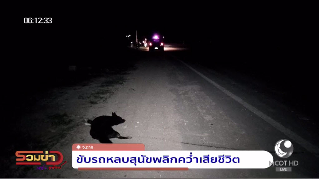 ตาก 1 ต.ค.-สองพ่อค้าจากชลบุรี มาหาซื้อโคตามแนวชายแดน อ.แม่สอด ระหว่างทางเจอสุนัขวิ่งตัดหน้ารถ คนขับรถตกใจหักรถหลบจนรถเสียหลักพุ่งชนป้ายบอกทางอย่างแรง ส่งผลทำให้รถพลิกคว่ำ คนขับเสียชีวิต ส่วนอีกคนบาดเจ็บเล็กน้อย