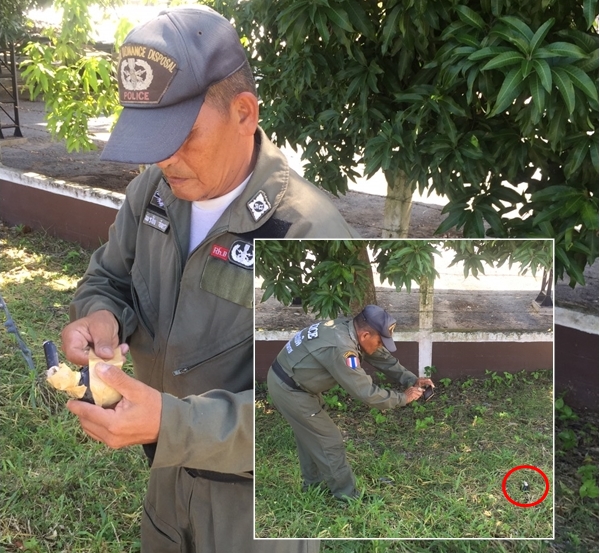 จึงนำกำลังไปตรวจสอบ พบวัตถุต้องสงสัยคล้ายลูกระเบิดชนิดน้อยหน่า แต่เมื่อตรวจสอบอย่างละเอียดพบว่า เป็นระเบิดปลอม ไม่มีอันตรายแต่อย่างใด เบื้องต้นเจ้าหน้าที่สันนิษฐานว่า อาจจะเป็นการข่มขู่ของกลุ่มวัยรุ่นแก๊งยาเสพติด หรือกลุ่มวัยรุ่นที่คึกคะนอง ซึ่งจะได้ทำการตรวจสอบหาสาเหตุที่แท้จริงต่อไป.-สำนักข่าวไทย