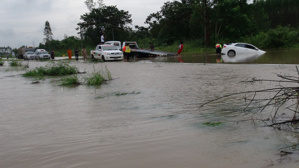ส่วน จ.สระแก้ว ฝนตกหนักมาตั้งแต่ช่วงเย็นจนถึงค่ำคืน ส่งผลให้น้ำคลองเอ่อท่วมหลายพื้นที่เขตเทศบาลเมืองวังน้ำเย็น อ.วังน้ำเย็น และถนนสาย 317 ซึ่งเป็นถนนสายหลักระหว่างจังหวัดสระแก้ว-จันทบุรี ตั้งแต่พื้นที่บ้านวังแดง ไปจนถึงบ้านสวนป่า และบ้านสะพาน 7 การสัญจรไม่สะดวก ซึ่งนายวันชัย นารีรักษ์ นายกเทศบาลเมืองวังน้ำเย็น และเจ้าหน้าที่ได้ลงพื้นที่อำนวยการจราจร พร้อมประสานหน่วยกู้ภัยมูลนิธิสว่างสระแก้ว อปพร. และเจ้าหน้าที่เทศบาลฯ เข้าประจำพื้นที่เพื่ออำนวยความสะดวกให้กับประชาชนที่ใช้เส้นทางดังกล่าวตลอดคืนที่ผ่านมา และเช้ามืดวันนี้ (3 ต.ค.) น้ำเริ่มลดลงแล้ว แต่การสัญจรของรถยนต์ขนาดเล็กต้องเพิ่มความระมัดระวัง เพราะยังมีน้ำไหลผ่านถนนเป็นช่วง ๆ คาดว่าในวันนี้จะกลับสู่ภาวะปกติ หากไม่มีฝนตกอีก