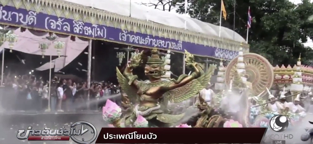 บรรยากาศ 2 ฝั่งคลองสำโรง อำเภอบางพลี จังหวัดสมุทรปราการ มีประชาชนจำนวนมากมาร่วมในพิธีโยนบัวลงไปในเรือขององค์หลวงพ่อโต (จำลอง) ประเพณีเก่าแก่ที่จัดขึ้นในอำเภอบางพลี ตั้งแต่ปี 2428 ต่อเนื่องมาจนถึงทุกวันนี้ นอกจากนี้ยังโยนข้าวต้มมัด ขนมแห้งใส่ลงไปในเรือของแขกต่างบ้านที่ล่องเรือมาชมงานโยนบัวครั้งนี้.-สำนักข่าวไทย