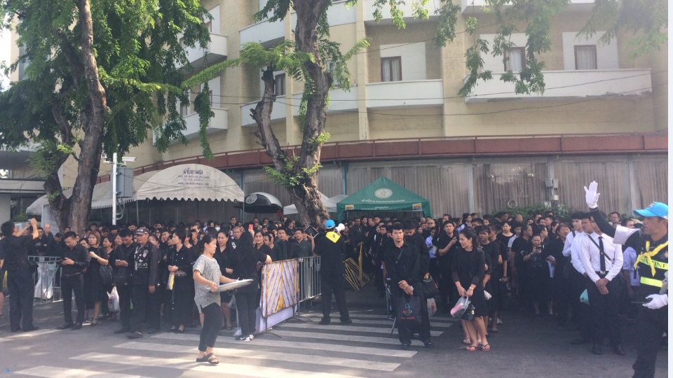 สนามหลวง 5 ต.ค- วันสุดท้ายของการเปิดให้ประชาชนเข้ากราบถวายบังคมพระบรมศพ พระบาทสมเด็จพระปรมินทรมหาภูมิพลอดุลยเดช ประชาชนหลั่งไหลมาอย่างต่อเนื่อง ไม่ย่อท้อแม้ใช้เวลาเฉลี่ยคนละ 6-9 ชั่วโมง