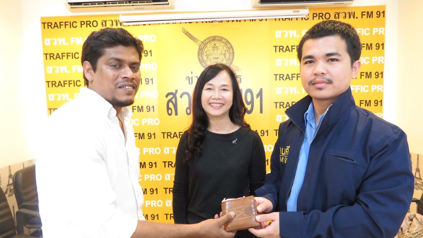 ที่ สวพ.FM 91 นายสามารถ พรมชาติ โชเฟอร์แท็กซี่ หนุ่มนครปฐม วัย 28 ปี ส่งมอบเงินสกุลเงินดอลล่าร์ จำนวน 1,500 ดอลล่าร์ พร้อมเงินไทย 7,060 บาท คืน Mr.Fazal Ahamed Kader Sulthan (ฟาซาล อะฮาเม็ด) อายุ 32 ปี พนักงานฝ่ายบัญชี บริษัท บี วี ไดมอนด์ อินเตอร์ จำกัด หลังทำหล่นบนรถแท็กซี่ สีเขียว-เหลือง ทะเบียน มช 3785 กรุงเทพ ของนายสามารถ เมื่อ 1 ตุลาคมที่ผ่านมา