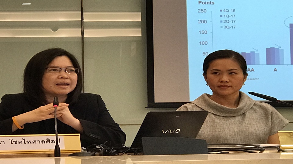 นางสาวณัฐพร ตรีรัตน์ศิริกุล ผู้บริหารงานวิจัย บริษัท ศูนย์วิจัยกสิกรไทย จำกัด กล่าวว่า ศูนย์วิจัยกสิกรไทยปรับเพิ่มประมาณการเศรษฐกิจไทยทั้งปี 2560 มาอยู่ที่ร้อยละ 3.7 จากเดิมร้อยละ 3.4 โดยมองว่าเศรษฐกิจไทยครึ่งปีหลังจะขยายตัวสูงกว่าครึ่งปีแรก นำโดยการส่งออกและท่องเที่ยว โดยการส่งออกขยายตัวเพิ่มขึ้นถึงร้อยละ 7 จากเดิมร้อยละ 3.8 หลังจาก 8 เดือนแรกของปีนี้การส่งออกขยายตัวร้อยละ 8.9 มาจากยางพารา ผลิตภัณฑ์ยางพารา และสินค้าอิเล็กทรอนิกส์