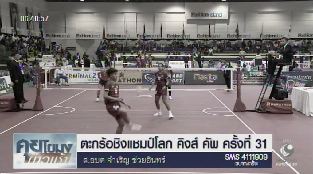 ตะกร้อชิงแชมป์โลก คิงส์คัพ ครั้งที่ 31 แข่งขันที่ไอส์แลนด์ ฮอลล์ ศูนย์การค้าแฟชั่น ไอส์แลนด์ ประเภทหญิงคู่ รอบแรก กลุ่มเอ นัดที่สอง หญิงคู่ไทย ที่เก็บชัยชนะมาแล้ว 2 นัดก่อนหน้านี้ พบกับ จีน ที่แพ้ มาเลเซีย มาในนัดแรก โดยนักหวดลูกพลาสติกไทย นำโดย มัสยา ดวงศรี และ สมฤดี ปรือปรัก โชว์ฟอร์มได้เหนือกว่าคู่แข่ง เอาชนะจีนไป 2 เซตรวด 21-8 และ 21-9 และในแมตช์ที่สาม หญิงคู่ไทย เอาชนะ มาเลเซียไป 2 เซตรวด เข้ารอบรองชนะเลิศเป็นที่ 1 ของกลุ่ม เอ ผ่านเข้าไปพบ กับเวียดนาม อันดับสอง ของกลุ่มบี