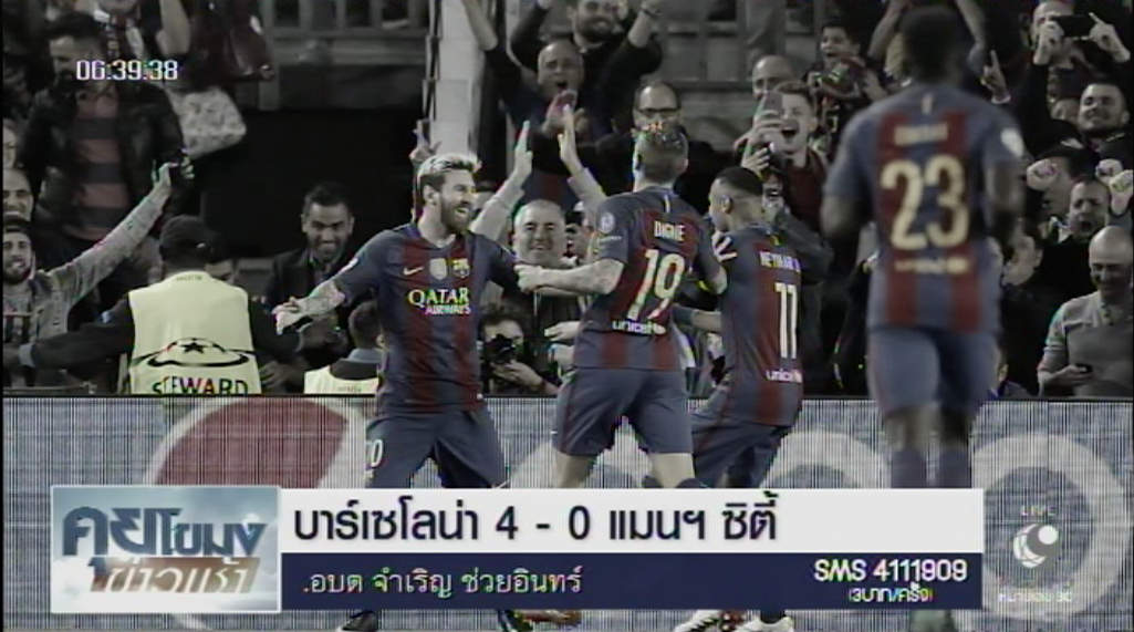 ฟุตบอลยูฟ่า แชมเปียนส์ ลีก รอบแบ่งกลุ่ม นัด 3 เมื่อวันพุธที่ผ่านมา ในกลุ่ม C บาร์เซโลนา เปิดสนามคัมป์ นู ไล่ถล่ม แมนเชสเตอร์ ซิตี้ 4-0 บาร์ซา ได้ประตูจากการทำแฮตทริกของ ลีโอเนล เมสซี่ ในนาที 16, 61 และ 69 อีกหนึ่งประตูจาก เนย์มาร์ นาที 89 เกมนี้ผู้เล่นที่ถูกใบแดงของทีมเยือน คือ เคลาดิโอ บราโว นาทีที่ 53 ขณะที่ เฌเรมี มาติเยอ ผู้เล่นเจ้าถิ่นโดนใบเหลือง-แดงไล่ออกนาทีที่ 73 ชัยชนะเกมนี้ทำให้ บาร์เซโลนา เก็บ 9 คะแนนเต็มจาก 3 นัด นำเป็นจ่าฝูงของกลุ่ม แมนฯ ซิตี้ มี 4 คะแนนแข่งเท่ากัน รั้งอันดับที่ 2 ของกลุ่ม
