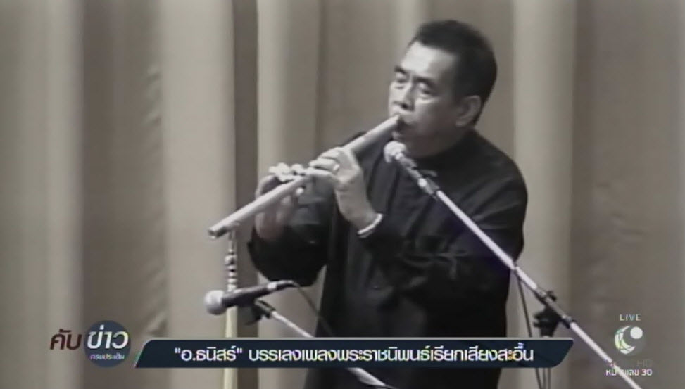 กทม. 19 ต.ค.-อ.ธนิสร์ บรรเลงเพลงพระราชนิพนธ์ แสงเทียน, ความฝันอันสูงสุด ให้กับคณาจารย์และนักศึกษา ม.รามคำแหง ทำหลายคนกลั้นน้ำตาไม่อยู่