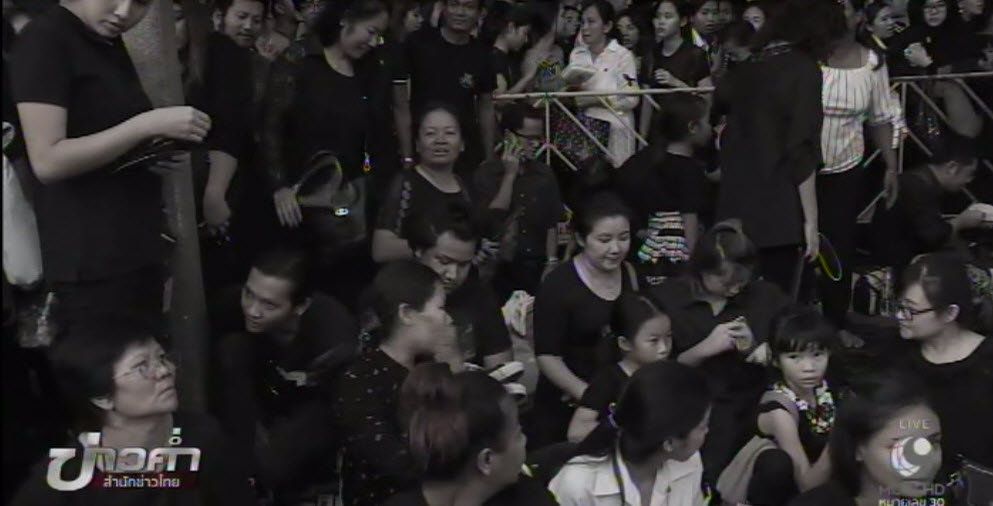 ขณะที่กลุ่มข้าราชการ พนักงานบริษัท นักเรียนนักศึกษาที่เพิ่งเสร็จจากภารกิจ เดินทางมาเพื่อถวายสักการะและแสดงความอาลัย บางส่วนตั้งใจมาทำหน้าที่จิตอาสา เก็บขยะ แจกน้ำดื่ม อาหาร ลูกอม รวมถึงศิลปินดาราก็มาร่วมแจกน้ำดื่มด้วยเช่นกัน. – สำนักข่าวไทย