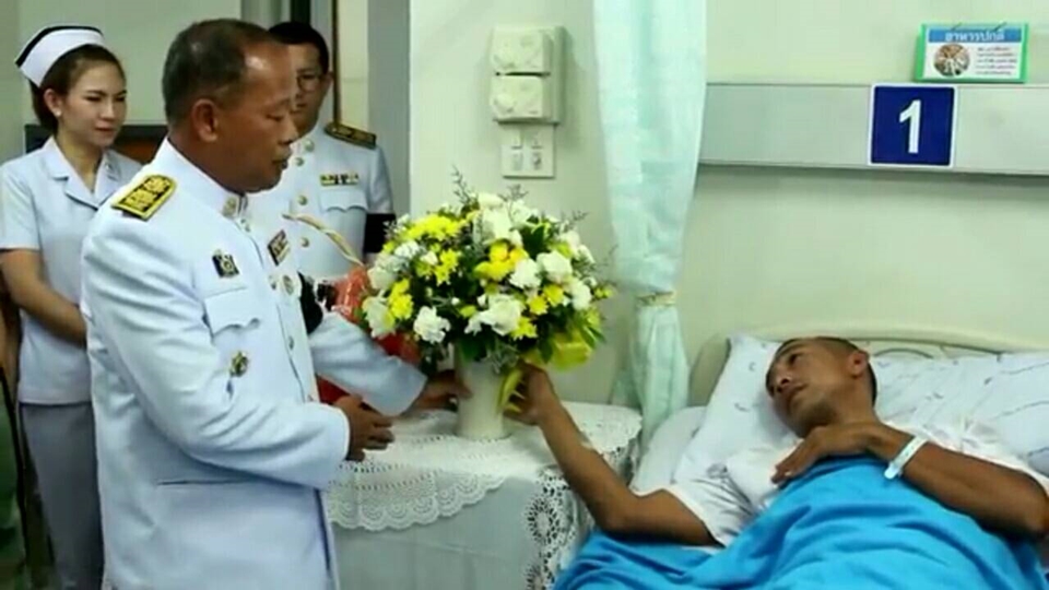 วันนี้(10 ต.ค.) สมเด็จพระเจ้าอยู่หัว ทรงพระกรุณาโปรดเกล้าโปรดกระหม่อมให้ นายสุรพร พร้อมมูล ผู้ว่าราชการจังหวัดนราธิวาส เชิญดอกไม้และตะกร้าสิ่งของพระราชทาน ไปมอบให้ทหาร 2 นายที่ได้รับบาดเจ็บจากการปฏิบัติหน้าที่ในพื้นที่จังหวัดชายแดนภาคใต้ เพื่อเป็นขวัญกำลังใจ ยังความปลื้มปิติแก่ทหารทั้งสองนาย ด้วยสำนึกในพระมหากรุณาธิคุณอย่างหาที่สุดมิได้