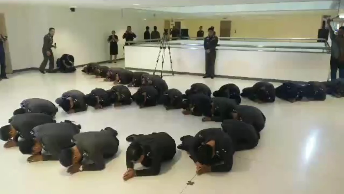 หลังจากเสร็จพิธี ข้าราชการตำรวจส่วนหนึ่งได้เข้าแถวเป็นรูปริบบิ้น พร้อมนั่งลงกราบต่อหน้าพระบรมฉายาลักษณ์